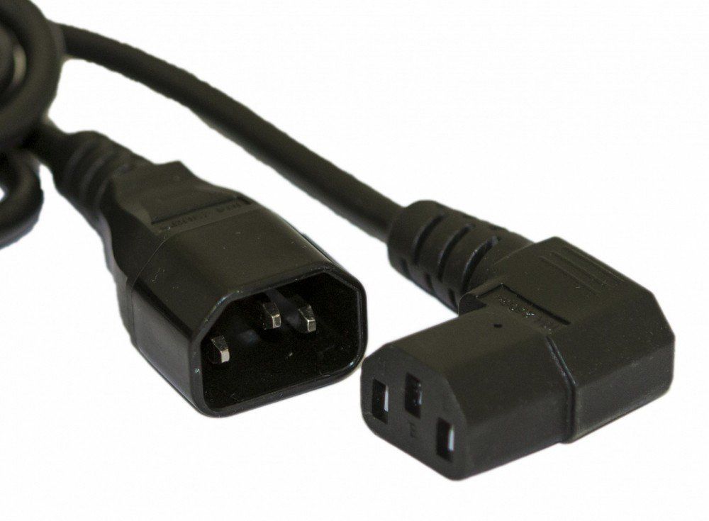 Кабель питания монитор-компьютер IEC 320 C13 (угловая) - IEC 320 C14 (3x0.75), 10A, прямая вилка, 1м, цвет черный