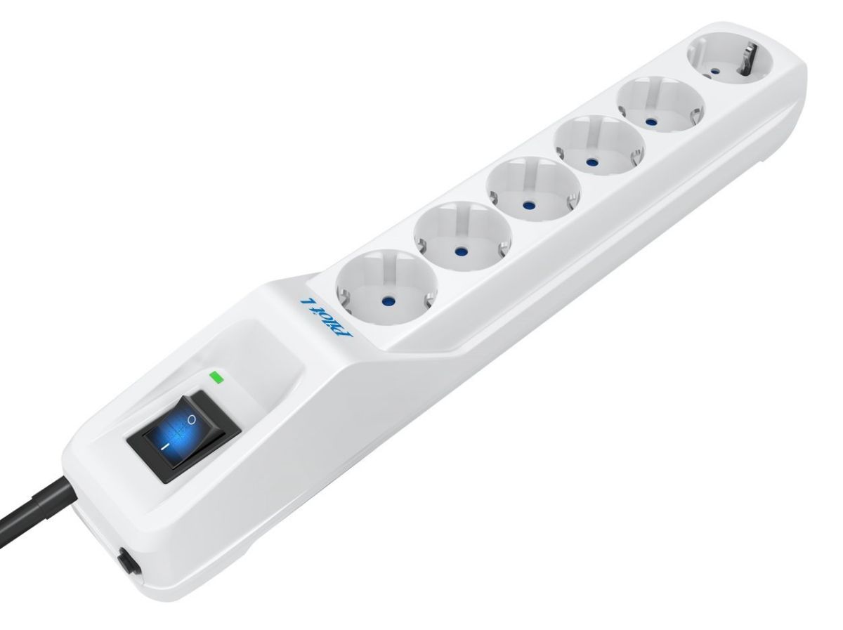 Сетевой фильтр с выключателем со световой индикацией, защита от короткого замыкания, перегрузки, 6 розеток EURO, 2.2 кВт, 10А, 3 м.