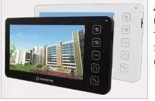 Монитор домофона, цв. TFT LCD 7", сенсорные кнопки, джойстик, hands-free, 1 вх. для вызывных панелей, 2 вх. для видеокамер, 1 вх. адаптирован под работу с многоквартирными домофонами, память кадры/ролики на SD, до 32ГБ, детектор движения. Питание 220В, 210х116х25мм