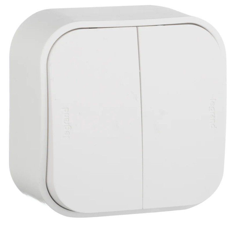Переключатель 2-клавишный открытой установки, серия Quteo, I-раб. 10 А, U-раб. 250 В, IP20, цвет белый, ШхВхГ 65х65х35 мм