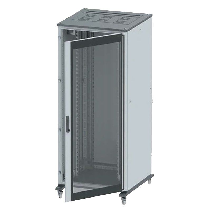 Напольный шкаф телекоммуникационный 19", 38U, 600х1000 мм, передняя дверь стекло, задняя дверь сплошная, укомплектован вводом и заглушками, IP20, цвет серый (RAL7011/7035)