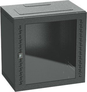 Шкаф телекоммуникационный 19" настенный, дверь стекло, 9U, 500х600х400 мм (ВхШхГ), распределенная нагрузка: 100 кг, IP31, цвет черный (RAL9005)