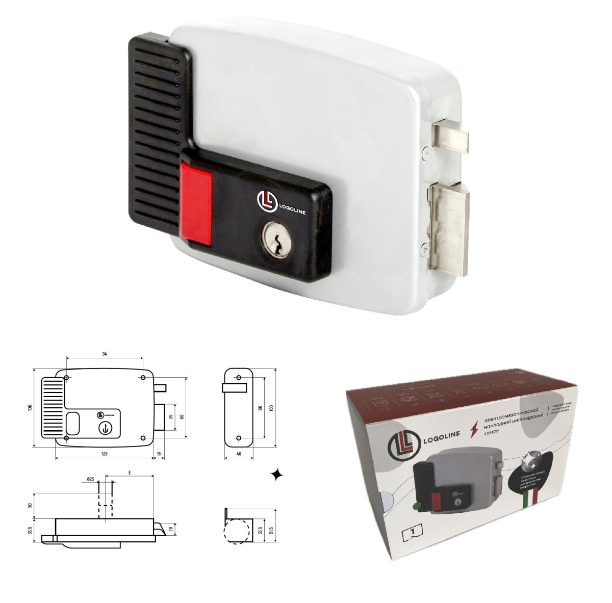 Накладной электромеханический замок, ключ снаружи, ключ + кнопка изнутри, для внутренних дверей, петли слева, цилиндр + три ключа, кнопка выхода, блокируемая ключом в положении "открыто", "закрыто". Металлический корпус с черной пластиковой отделкой. 12В, 3А, -20…+50°C, 128х106х33,5 мм, 1,6 кг