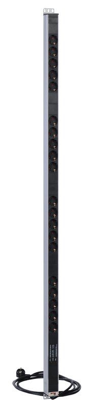 Блок розеток вертикальный с фильтром защиты и индикатором питания, 20 Sсhuko, 33U, корпус алюминий, шнур 3 м Schuko, 3.5кВт, 16 A, 1463х45х60 мм.
