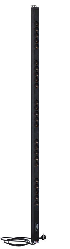 Блок розеток вертикальный с фильтром защиты и индикатором питания, 25 Sсhuko, 42U, корпус алюминий, шнур 3 м Schuko, 3.5кВт, 16 A, 1863х45х60 мм.