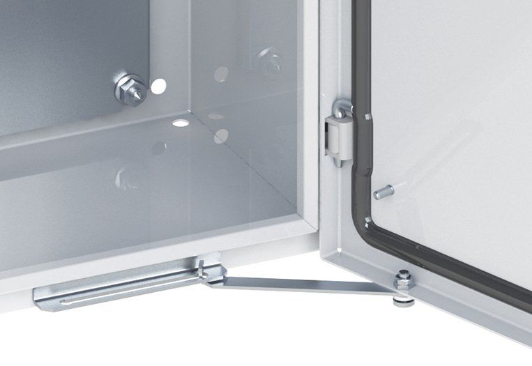 Ограничитель дверной SD 2 предназначен для ограничения угла открывания двери компактного распределительного шкафа; монтируется к корпусу и двери компактного распределительного шкафа.