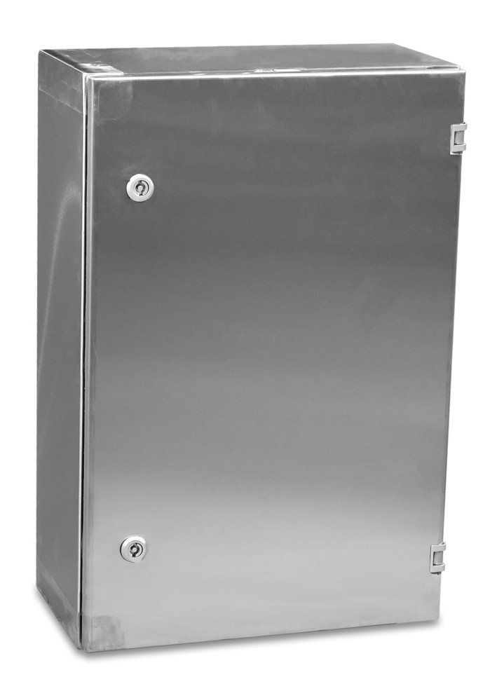 Шкаф распределительный из нержавеющей стали марки AISI 304 шлиф., монтажная панель, замок на двери, IK10, IP66, габ.размеры (ВхШхГ) 1000х800х300 мм.
