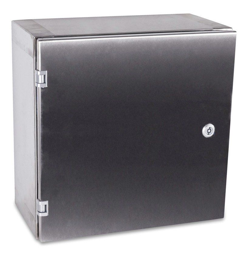 Шкаф распределительный из нержавеющей стали марки AISI 304 шлиф., монтажная панель, замок на двери, IK10, IP66, габ.размеры (ВхШхГ) 600х600х210 мм.