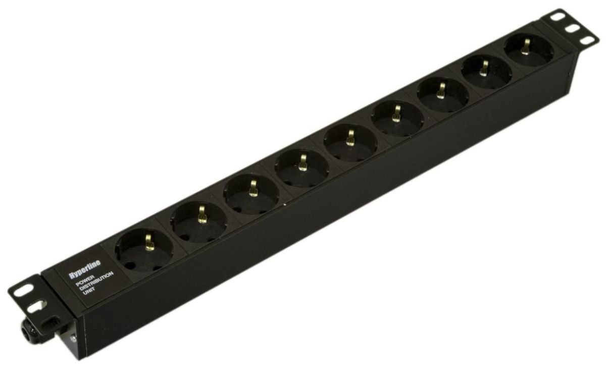 Блок розеток для 19" шкафов, горизонтальный, 9 розеток Schuko, 16A, 250В, без кабеля питания, клеммная колодка, 482.6x44.4x44.4мм (ДхШхВ)