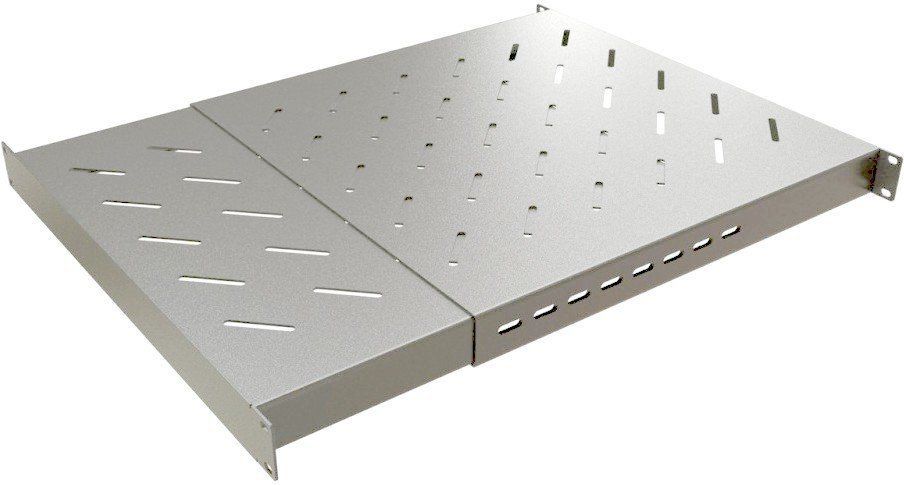 Полка 19" перфорированная с регулируемой глубиной 600-1000 мм, для напольных шкафов и открытых стоек, усиленная до 100кг, цвет серый (RAL 7035).
