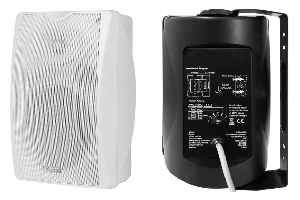 Настенный 2-х полосный громкоговоритель; 30/15/8/5 Вт; 100В или 8 Ом; 90дБ; 80 - 20 000Гц. Габ.размер: 194х280х185мм. Пластиковый корпус с металлической решёткой; цвет: белый.