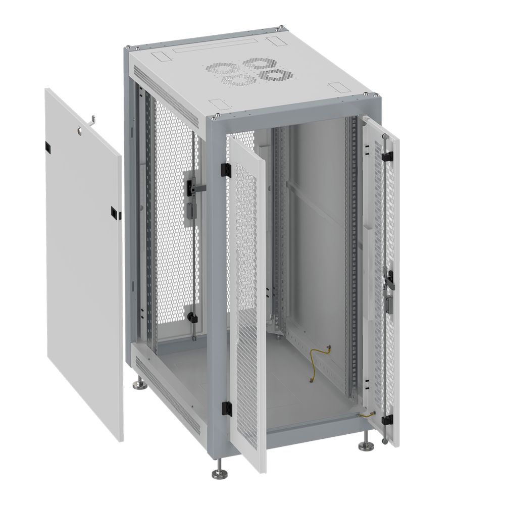 Шкаф монтажный телекоммуникационный 19" напольный 22U 600x1000x1100mm (ШхГхВ), передняя дверь двухстворчатая перфорированная, задняя дверь двухстворчатая перфорированная, поворотная ручка с замком, цвет серый RAL 7035. Разобранный.
