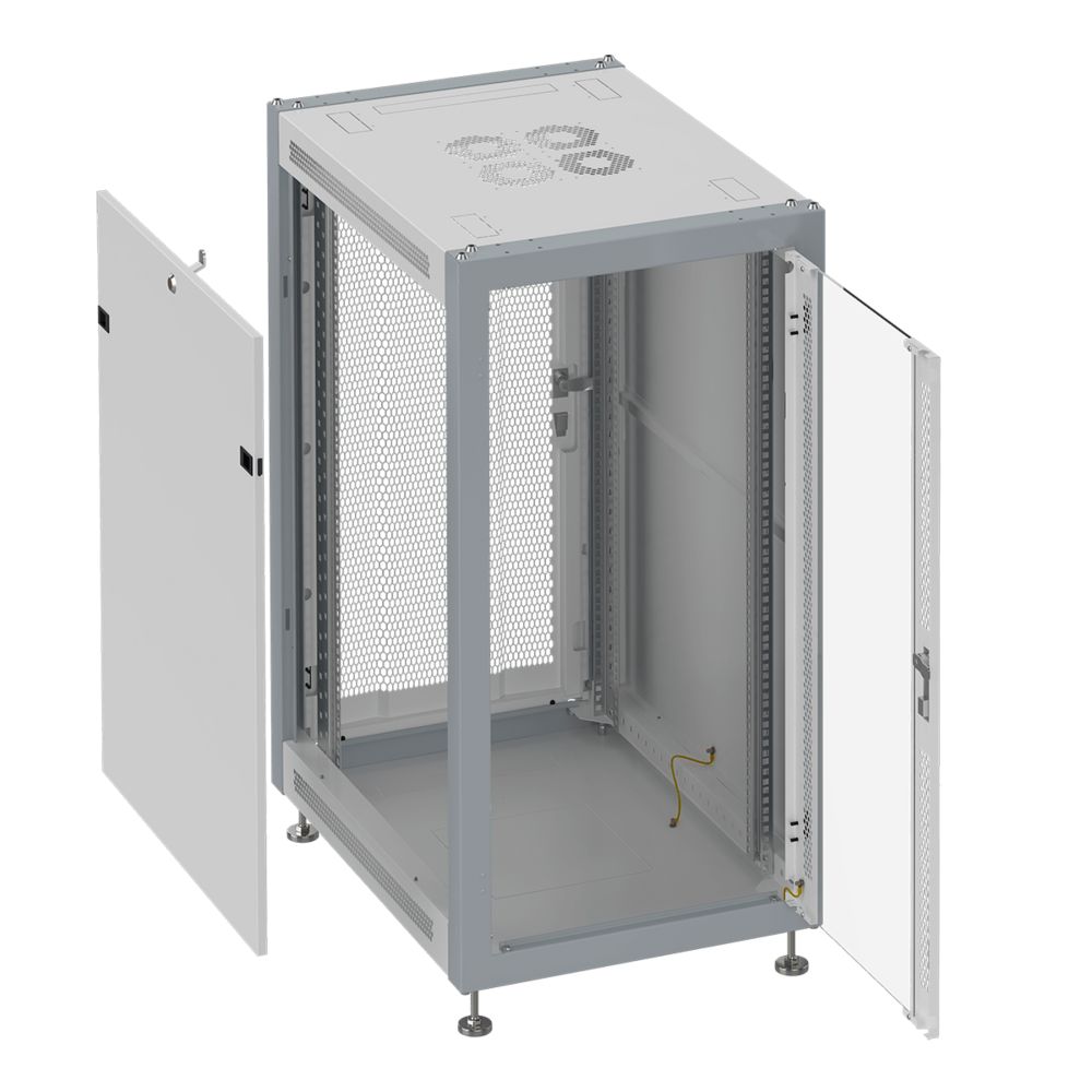 Шкаф монтажный телекоммуникационный 19" напольный 42U 600x1000x2000mm (ШхГхВ), передняя дверь стеклянная, задняя дверь перфорированная, поворотная ручка с замком, цвет серый RAL 7035. Разобранный.
