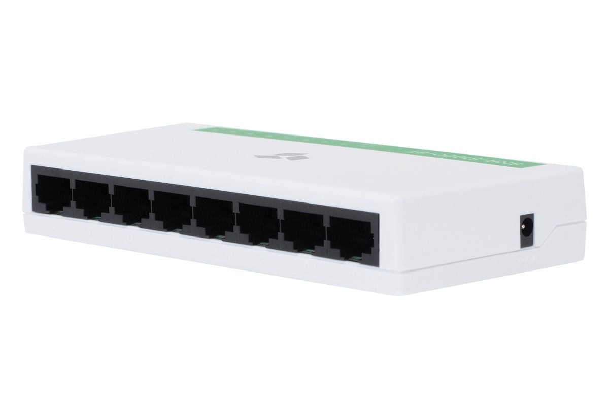 Коммутатор сетевой неуправляемый, 8 портов RJ45 10/100 Мбит/с; внешний БП DC 5В; 0.5А; 0…+40°C; 125x65x22 мм.