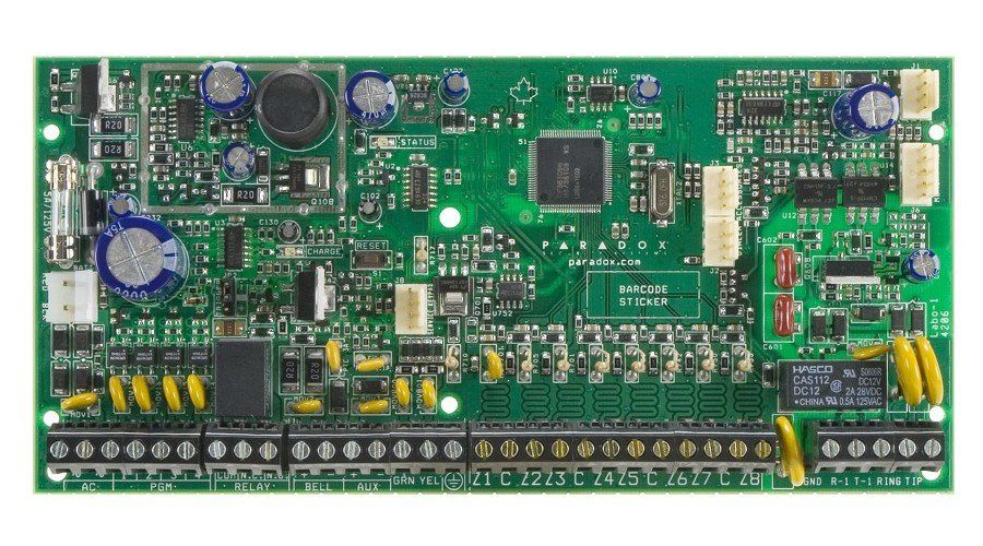 Контрольная панель на 32 зоны, 8 (2х8) зон на плате, 4-проводная шина (3 х ZX8, 1 х PGM4, до 15 клавиатур), 2 подсистем, 2 PGM, выход на сирену, модем, Uпит.~16В/40ВА, резерв. питание аккум. 12В/7 А*ч (опция), встроенный источник питания 12В/0,7А. Устанавливается в метал.бокс (опция)
