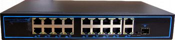 Неуправляемый активный 18-портовый PoE-коммутатор, 16 х 10/100 Мб/с PoE RJ45 (порты 1-16); 2 х 10/100/1000 Мб/с RJ45(порты 17-18), 1 Гб SFP, бюджет PoE до 250 Вт, мощность на порт 30 Вт (макс.), ССTV Extend