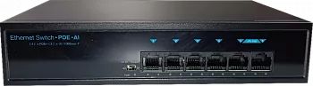 Неуправляемый активный 6-портовый PoE-коммутатор, 4 х 10/100 Мб/с PoE RJ45 (порты 1 - 4); 2 х 10/100 Мб/с с Uplink RJ45 (порты 5 - 6), бюджет PoE до 75Вт, мощность на порт 15 Вт (макс.), ССTV Extend, VLAN