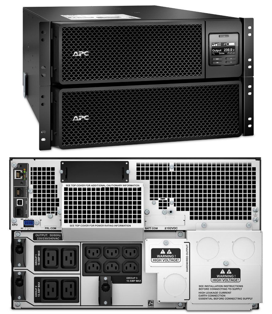 Источник бесперебойного питания Online с ЖК дисплеем стоечный, чистый синус; P-нагр.8000 ВА/8000 Вт; U-вх.160…275 В; синусоидальный сигнал; защита от перегрузки и КЗ; USB, RJ-45, SmartSlot; Выход 6 IEC 320 C13, 3 IEC Jumpers; Вход Hard Wire 3 wire(1PH+N+G); 0...+40°C; 432х263х715 мм. Дополнительный батарейный модуль SRT192RMBP2.