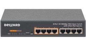 Управляемый Web/Smart коммутатор, 8 портов 10/100Мбит/с (из них 4 с поддержкой PoE IEEE 802.3af), PoE бюджет 55 Вт