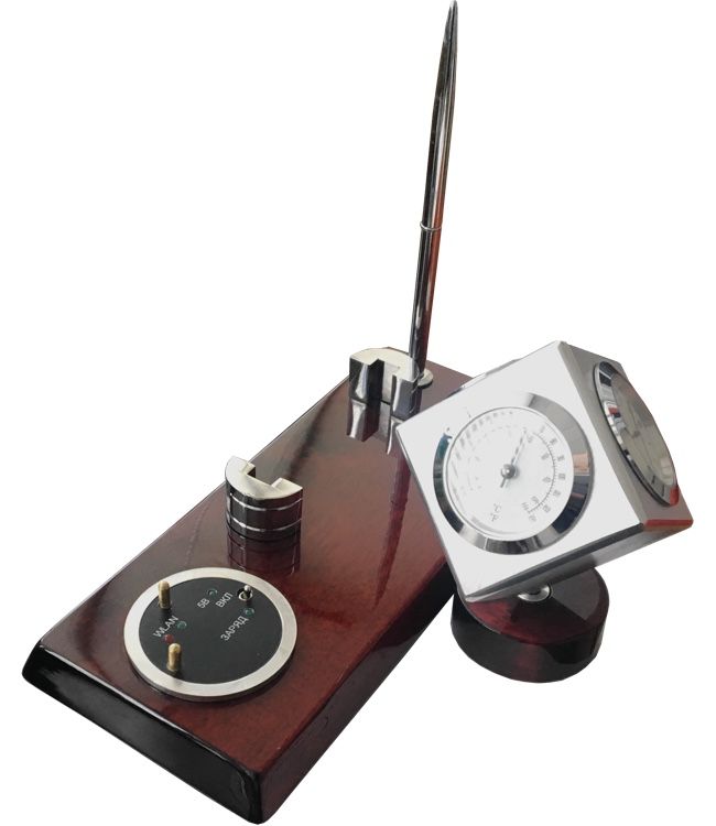 Антенной радиоприемного устройства является авторучка, входящая в комплект настольного прибора.