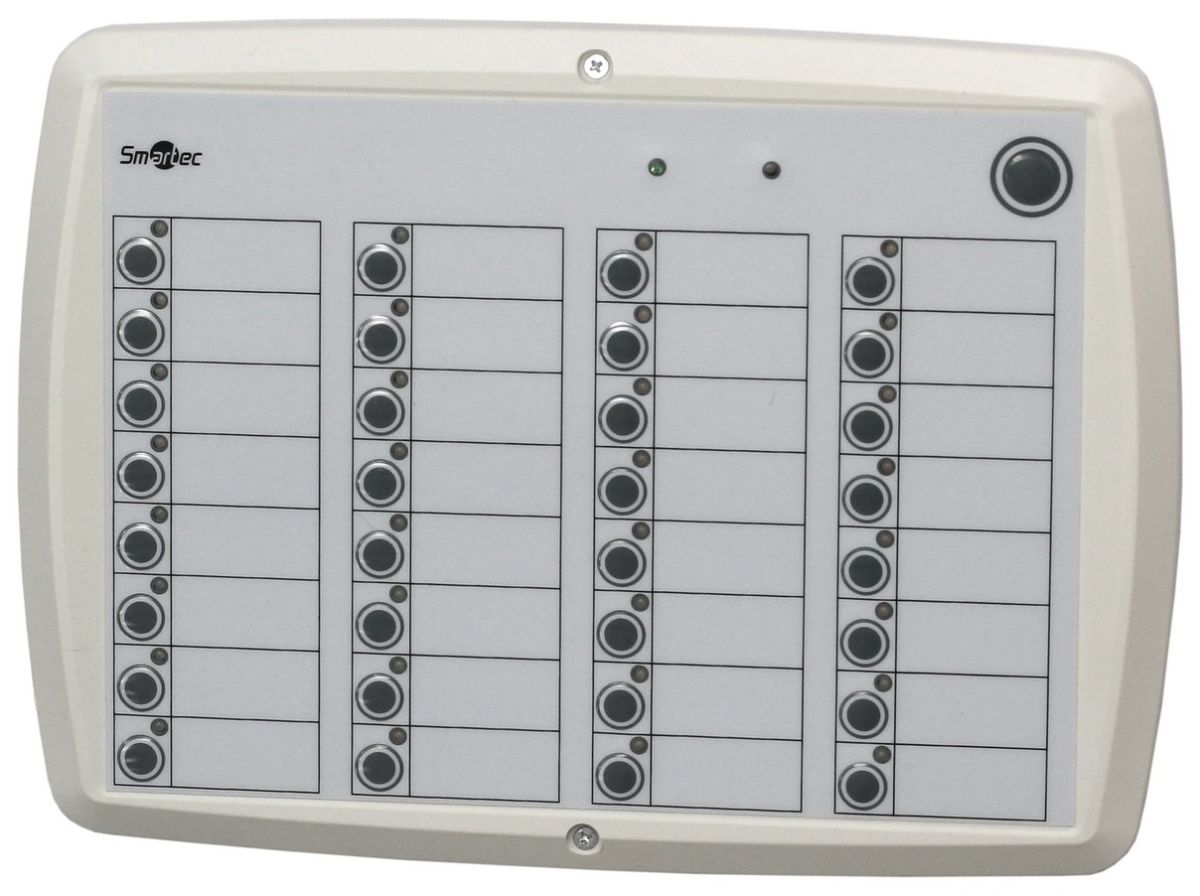 Сетевая панель ST-NC032 предназначена отображения статуса и управления различными элементами интегрированной системы безопасности, например, разделами охранной сигнализации. Она может использоваться совместно с контролерами ST-NC221 и ST-NC441. Устройство имеет 32 свободно программируемых элемента (световой индикатор/кнопка) и порт подключения считывателя для авторизации сотрудника при выполнении каких-либо операций.