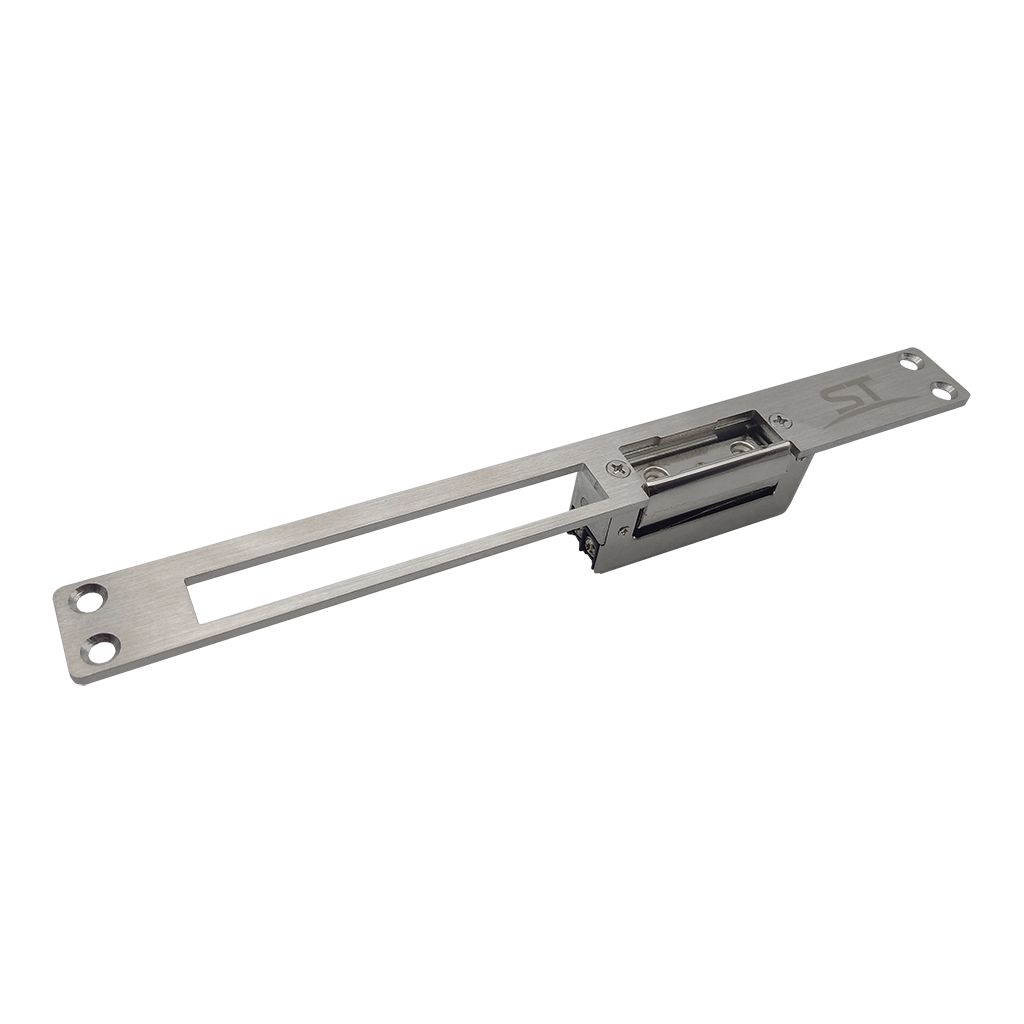 Защелка электромеханическая ST-NO 001; 12В DC; 220 мА; -40..+50°C; габариты защелки 67х17х28,6 мм; габариты накладки 250х25х3 мм; 0,156 кг; цвет: серебристый