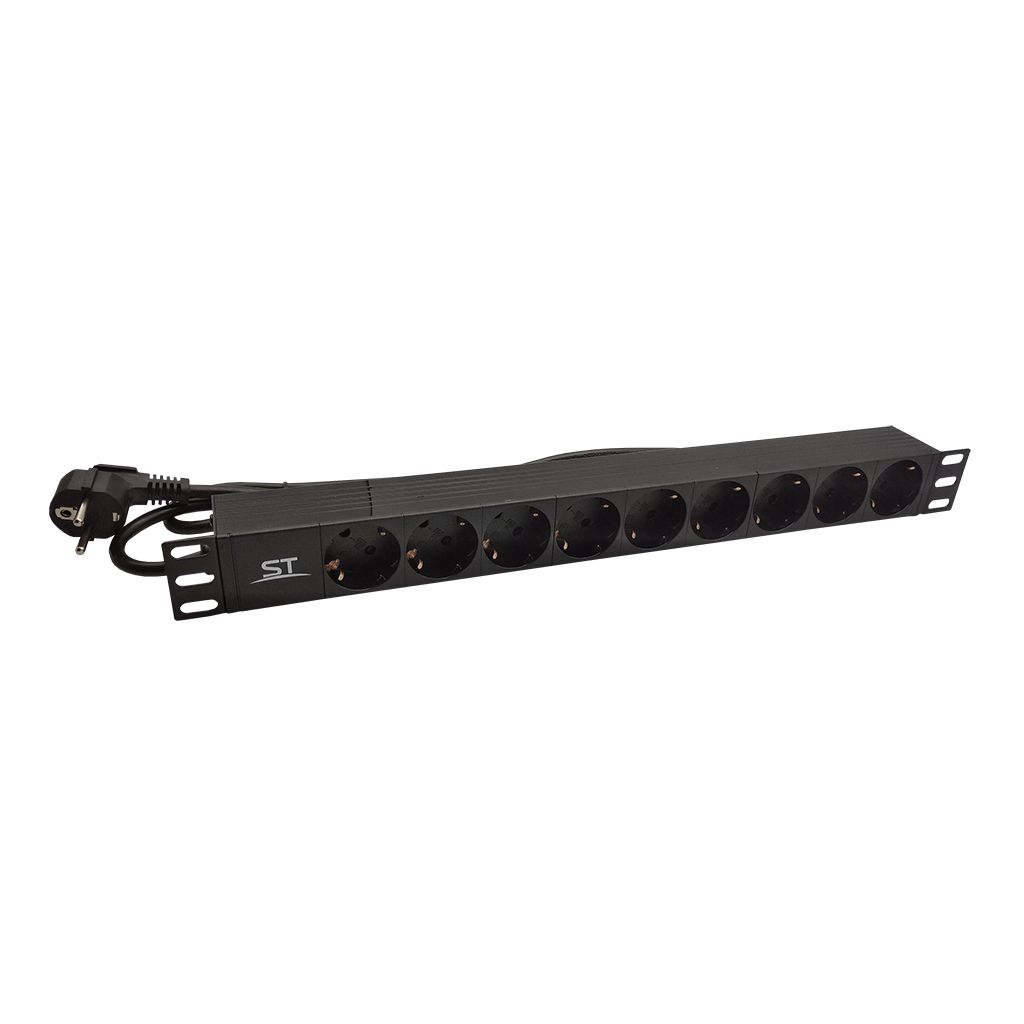 Блок розеток для 19" шкафов, горизонтальный, 9 розеток Schuko, 230-250 В, 16A, 3500 Вт, длина кабеля 2.5 м, с вилкой Schuko, 436х45.2х45.2мм