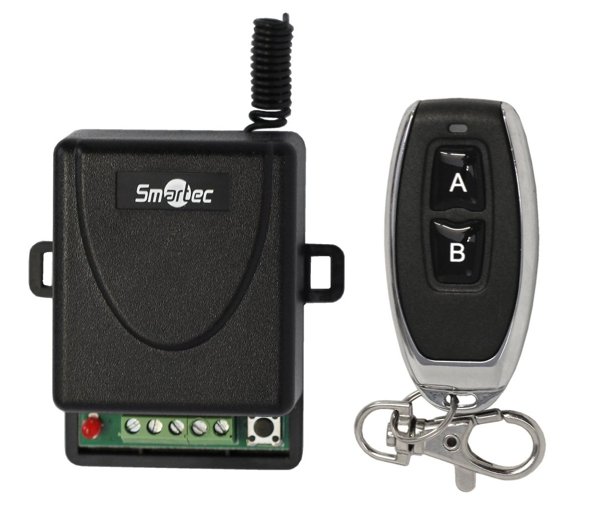 Комплект управления по радиоканалу с динамическим кодом (приемник + брелок); 433 МГц; 1 реле НЗ/НР; память до 6 брелоков; триггерный и импульсный режимы. DC 12В/24В; 12мА.