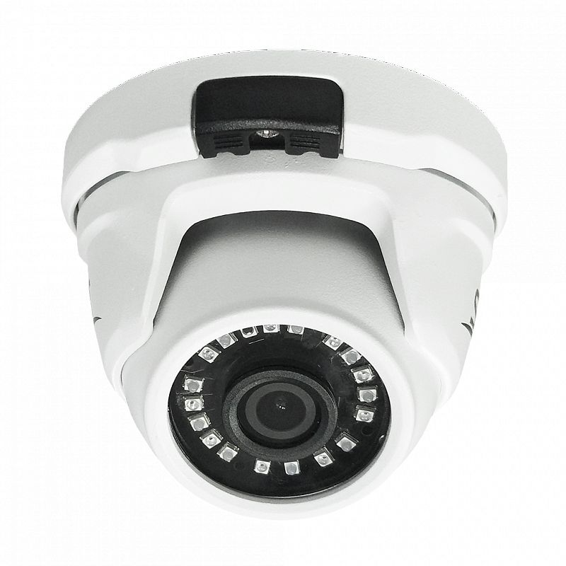 Видеокамера IP 2 Мп купольная; 1/2.7" Progressive Scan CMOS; 0.1 лк; 1920х1080 - 25 к/с; ИК подсветка 20 м; объектив 2.8 мм; H.264/H.265; BLC, DWDR, AGC, DNR; ONVIF S, P2P; аудиовход 1 RCA, 12В DC; 5Вт; IP66; -45 ...+60°C.