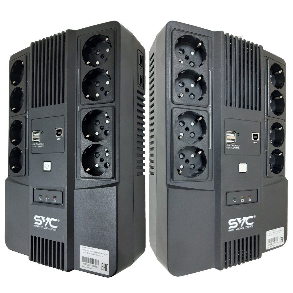 Источник бесперебойного питания линейно-интерактивный, P-нагр.800ВА/480Вт, U-вх.220В, AVR:162...290В, U-вых.220В±10%, АКБ 1х12В/9Ач; выходные разъемы 4хSchuko CEE7/4+4хSchuko CEE7/4(без бат. поддержки)+2хUSB(A); светодиодная индикация; IP20, 310х205х95 мм. Напольный