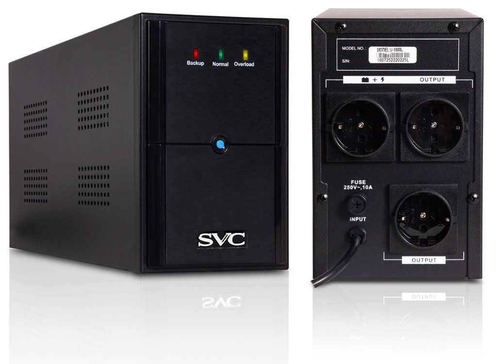 Источник бесперебойного питания Line-Interactive, модифицированная синусоида; P-нагр.1500 ВА/900 Вт; U-вх.145…290 В, два АКБ 12 В 9 Ач; Защита от перегрузки и КЗ; Розетка 3xSchuko; t-раб.0…+40°C; 192х124х340 мм.