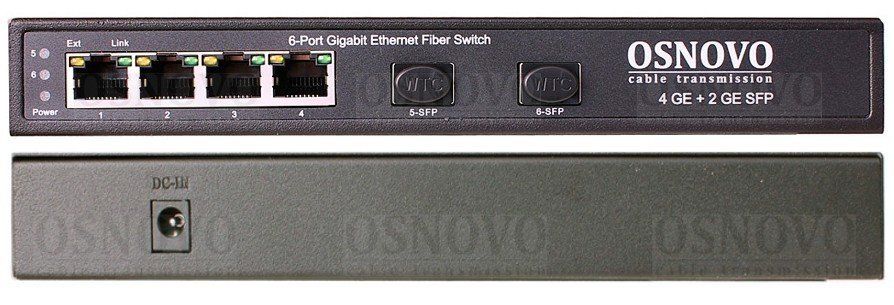 Коммутатор неуправляемый Gigabit Ethernet 4 x GE (10/100/1000Base-T), 2 x GE SFP (1000Base-FX). IEEE802.3z/AB, 10/100/1000Base-T, 1000Base-SX/LX, Flow control: Full Duplex: IEEE802.3x flow control, Half Duplex: bake pressure flow control. БП DC12V(1A); встроенная грозозащита 3кВ; -10…+55°С; 210x28x85мм.