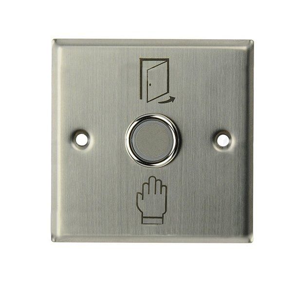 Кнопка выхода, врезная с подсветкой (зеленый), металл, НО/НЗ контакты, 85х85х33 мм