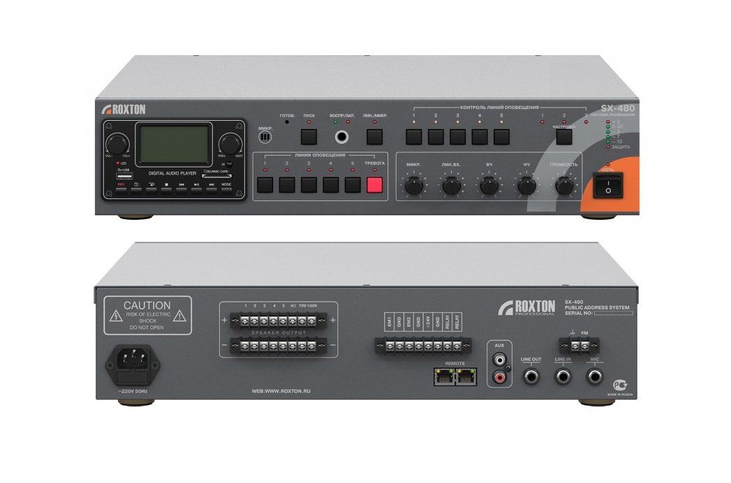 Комбинированная система оповещения SX-480 представляет собой устройство, совмещающий в себе функции 5-ти зонного трансляционного усилителя, блока цифровых сообщений, блока автоматического контроля линий. Данный блок представляет собой законченную полнофункциональную систему оповещения (СОУЭ 3 типа)