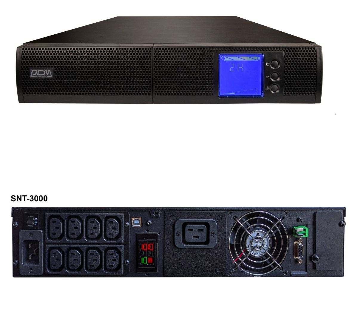 Источник бесперебойного питания On-line, 2U, 3000 ВА; нагрузка 3000Вт; U-вх. 180-300В АС; чистая синусоидальная волна; ЖК дисплей, SNMP карта, RS-232, USB, EPO; вход 1xIEC320 C20, выход 8xIEC320 C13, 1xIEC320 C19; защита от перезаряда, перенапряжения, короткого замыкания, АКБ 12В/9Ач, 6 шт в комплекте; 0...+40°С, 428х635х84 мм.