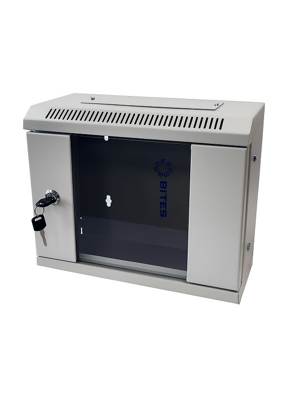 Шкаф телекоммуникационный 10" настенный, 4U, дверь со стеклом, задняя стенка цельнометаллическая, полезная глубина 100 мм, распределенная нагрузка до 50 кг, сварной неразборный, цвет серый, 260х312х150 мм.
