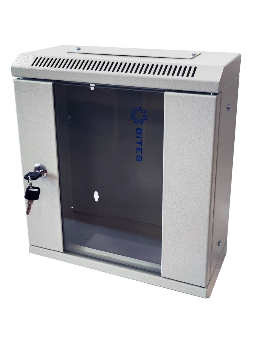 Шкаф телекоммуникационный 10" настенный, 6U, дверь со стеклом, задняя стенка цельнометаллическая, полезная глубина 100 мм, распределенная нагрузка до 50 кг, сварной неразборный, цвет серый, 350х312х150 мм.