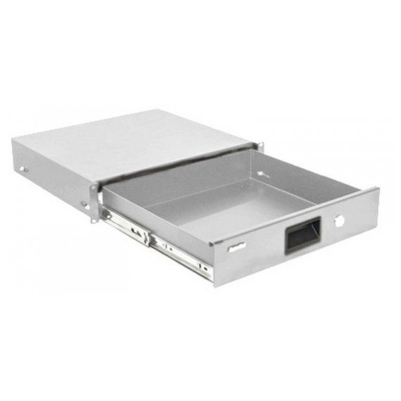 Полка (ящик) для документов с замком, 2U, 88х483х360мм (ВхШхГ), цвет серый (RAL 7035)
