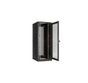Шкаф телекоммуникационный 19" напольный, 33U, передняя дверь стекло, боковые стенки и задняя дверь перфорированные, полезная глубина 900 мм, распределенная нагрузка 1100 кг, разборный, цвет черный, 1660х600х1000 мм.