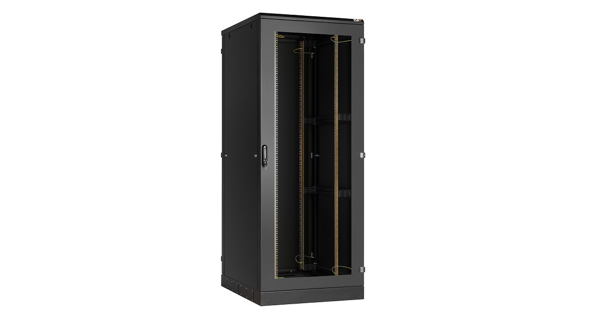 Шкаф телекоммуникационный 19" напольный, 42U, двухстворчатые перфорированные двери, двухуровневые перфорированные боковые стенки, полезная глубина 900 мм, распределенная нагрузка 1100 кг, разборный, цвет черный, 2060х800х1000 мм.