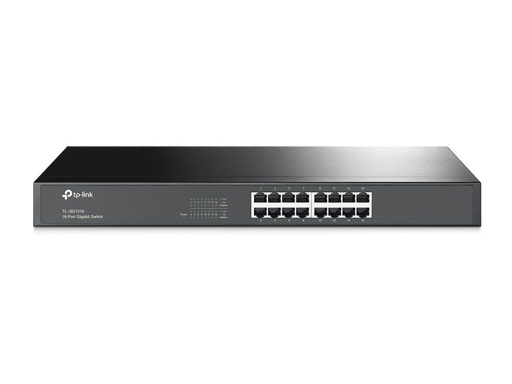 Коммутатор сетевой гигабитный неуправляемый 16 портовый; 16 портов RJ45 10/100/1000 Мбит/с; 100-240 АС; 0…+40 °С; 440x360x44 мм.