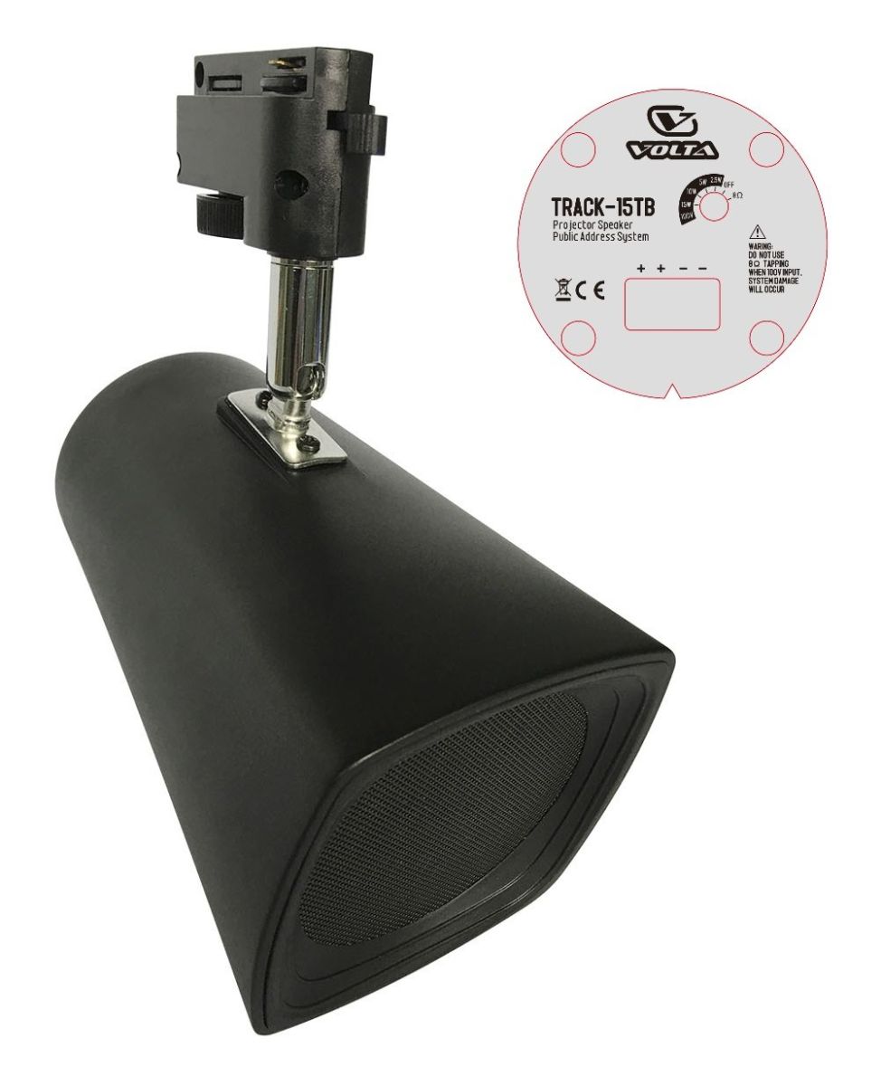 Трековый громкоговоритель 15/10/5/2,5 Вт; 100В или 8 Ом; 90дБ; 100 - 20 000Гц. Габ.размер: 105х105х162мм. Пластиковый корпус с металлической решёткой; цвет: чёрный. Монтируется в шинопровод, который крепится к стене или потолку.