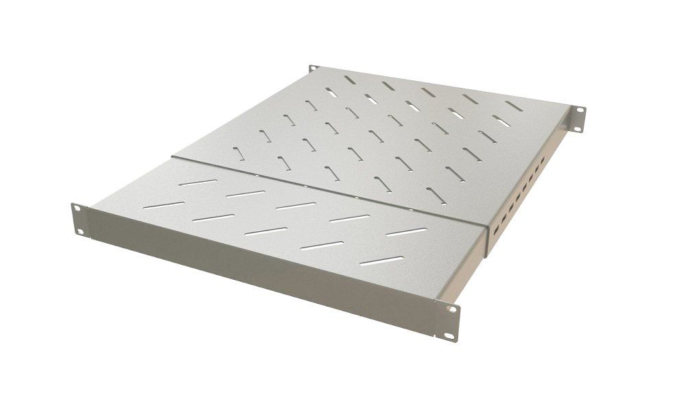 Полка c 19'' креплением, раздвижная, 1U, с регулируемой глубиной установки от 405 мм до 700 мм, нагрузка до 220 кг, для установки в шкафы глубиной 600-800 мм, цвет серый.