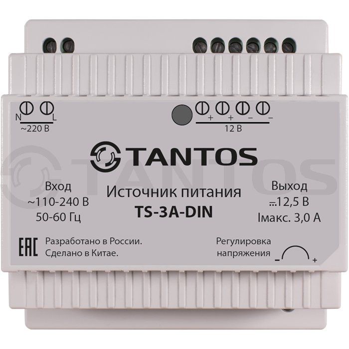 Источник стабилизированного питания 12В, 3А, встроенная защита от короткого замыкания нагрузки, перегрузки по напряжению и току.