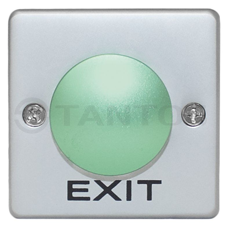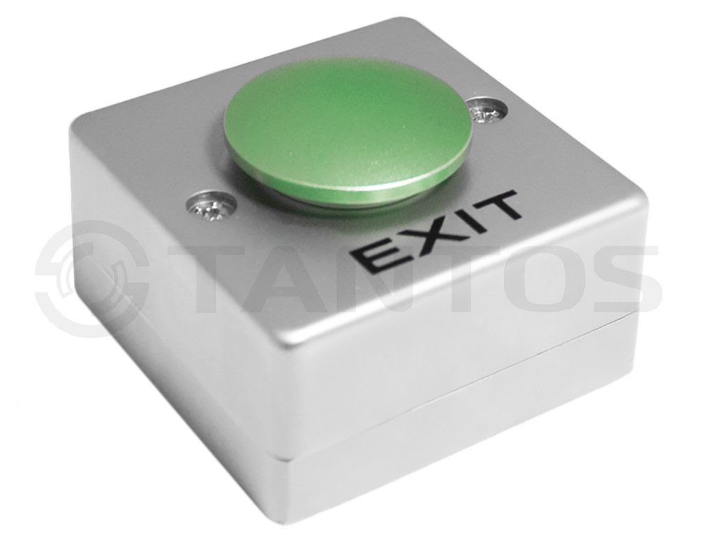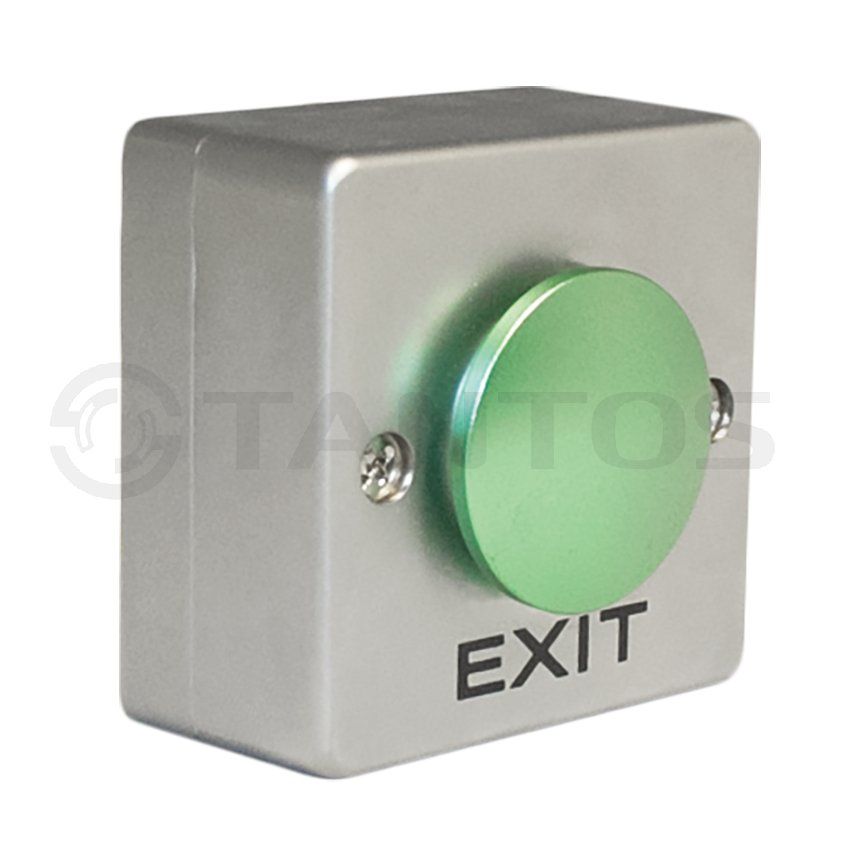 Накладная кнопка выхода квадратной формы с нажимным элементом зелёного цвета типа "грибок".