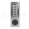 Кодонаборная панель пыле- влагозащищённая с классом защиты IP66, со встроенным считывателем отпечатков пальцев, считывателем идентификаторов формата Em-marin и автономным контроллером на 99 отпечатков и 988 карт/кодов и выходом Wiegand-26-44.