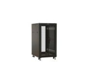 Шкаф напольный 19'', 18U, передняя стеклянная дверь со стальными перфорированными боковинами, задняя дверь сплошная, ручка с замком, допустимая статическая нагрузка 800 кг, полезная глубина 710 мм, цвет черный, разобранный, 988x600х800 мм.