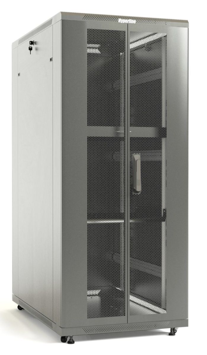 Шкаф напольный 19", 37U, 1833x600х800 мм (ВхШхГ), передняя и задняя распашные перфорированные двери (75%), ручка с замком, крыша нового типа, цвет серый (RAL 7035) (разобранный).