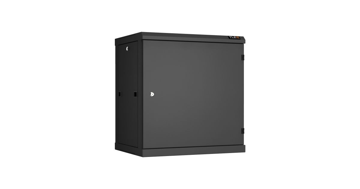 Настенный телекоммуникационный шкаф 19", 12U, глубина 450 мм, в разобранном виде, передняя дверь цельнометаллическая, задняя стенка цельнометаллическая, полезная глубина 390мм, 636х600х450мм, цвет чёрный.