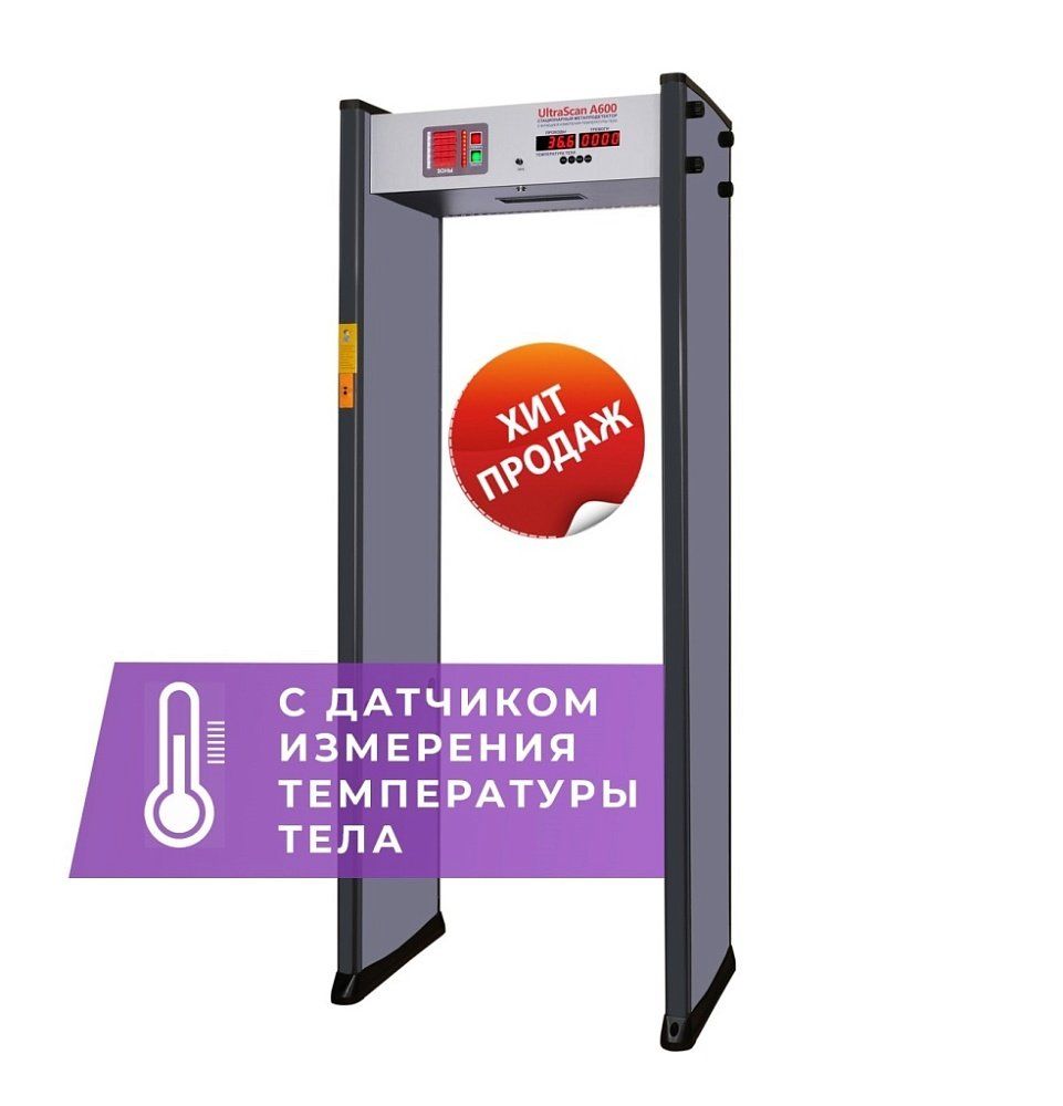 В арочном металлодетекторе UltraScan A600 есть термодатчик для бесконтактного измерения температуры тела у людей, проходящих через данную рамку. Прибор сигнализирует при превышении температуры порога 37,2 С и выдает голосовой сигнал, что проход запрещен. Для мониторинга достаточно поднести руку к датчику всего на полсекунды. Металлоискатель может быть установлен в любых учреждениях, где на входе требуется узнать температуру человека (не заболел ли он), это могут быть школы и детские сады, больницы и поликлиники, офисы, государственные учреждения.